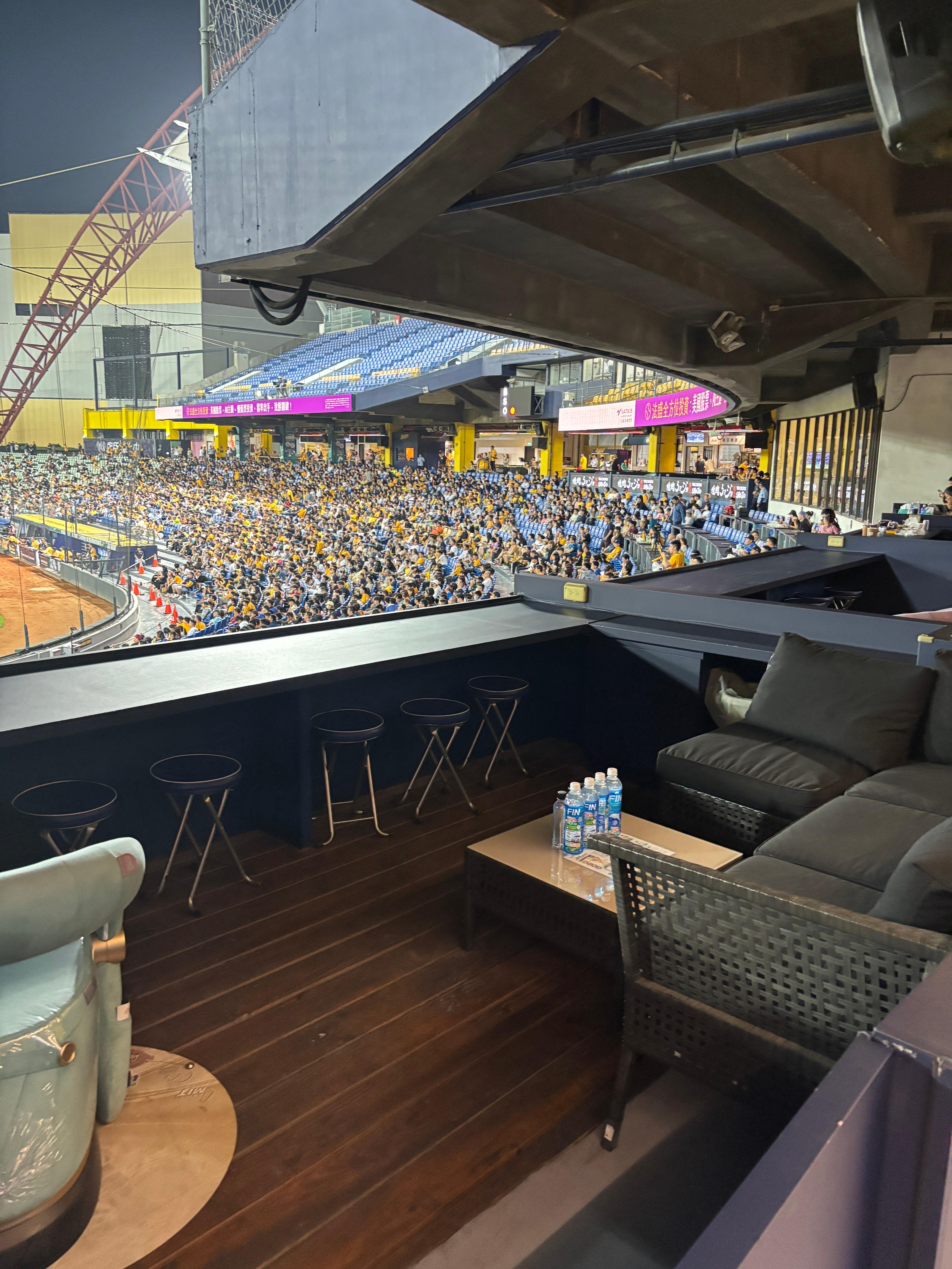 타이중 야구장 테이블석? 라운지석? 타이중 야구장에는 ‘테이블석’ 혹은 ‘라운지석’으로 보이는 독특한 좌석도 있다. 소파와 탁자가 있는 형태로, 소규모 단체 관람에 적합해 보인다. 가격은 약 6,300~8,000 TWD (한화 약 30~37만원)으로 다소 고가지만, 여러 명이 함께하면 그리 부담스럽지 않을 것 같다. 언젠가 대만 야구를 좋아하는 사람들과 이 자리에서 함께 경기를 보고 싶다.